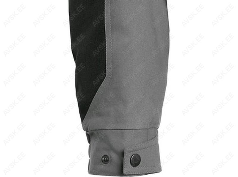 Tööjakk STRECH tootesarjast. 98% puuvill. 2% elastaan. 250 g/m2 (kanga tihedus) on hingavast. venivast. kergest ja mugavast kangast. mis annab kasutajale palju parema liikumisvabaduse. Kulumiskindluse suurendamiseks on enim kuluvatel kohtadel nagu õlaosadel. küünarnukkidel. varruka- ja taskuäärtel kasutatud tugevat polüesterkangast 600D. Krae sees pehme materjal. 5 funktsionaalset taskut. Ees tõmblukk. mis kaetud trukk-kinnituse esiliistuga. Randmeosad ja alt äär reguleeritavad trukk-kinnitusega. Selja alaosa pikendatud. Dekoratiivsed helkurribad varrukatel ja seljal.