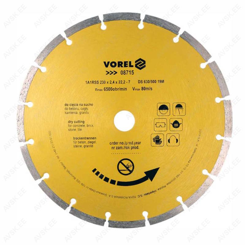 Teemantketas nurklihvijatele. Varustatud 7mm kõrguste segmentidega. Kuiv lõige. Soovitatav betooni, kivi, telliste ja muude ehitusmaterjalide lõikamiseks. Soovitav kiirus ca 6500/min.