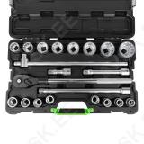 Väga hea valiku ning mõistliku hinnatasemega 3/4" padrunite komplekt. 12-kant profiiliga. Lisaks padrunitele on komplektsi T-saba. pikendused ja korralik tirrvõti. Padrunid on valmistatud CrV eriterasest. satiinmati pinnatöötlusega. Tööriistad on tugevas palstkohvris.