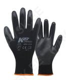 Töökindad polüuretaankattega peopesas, mustad. Pakis 12 paari.