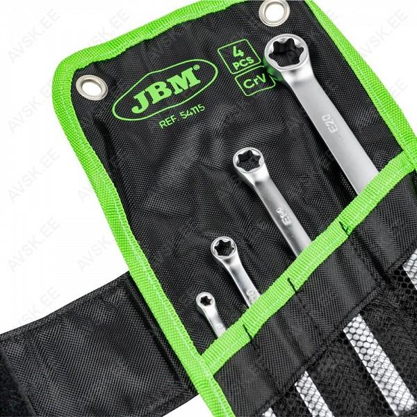 Sirgete torx-silmuste komplekt. Enamlevinud mõõdud E6xE8-E10xE12-E14xE18-E20xE24. Valmistatud vastupidavast kroomvanaadium eriterasest. Tugevas tekstiilkotis.
