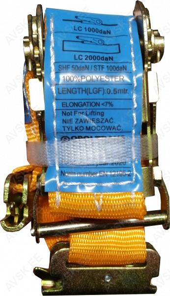 Külmikutel kasutamiseks mõeldud koormarihm. Tavalisest koormarihmast erineb kompaktsema pinguti poolest. lisaks rihma otsad on külmiku seintes ja põrandas olevate kinnitusprofiilide sisse sobivad. Vastab nõuetele EN 12195-2. Läbi õmmeldud sildiga.