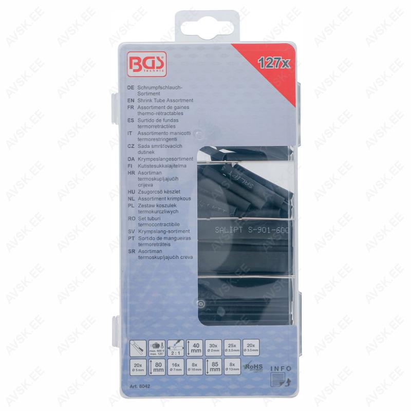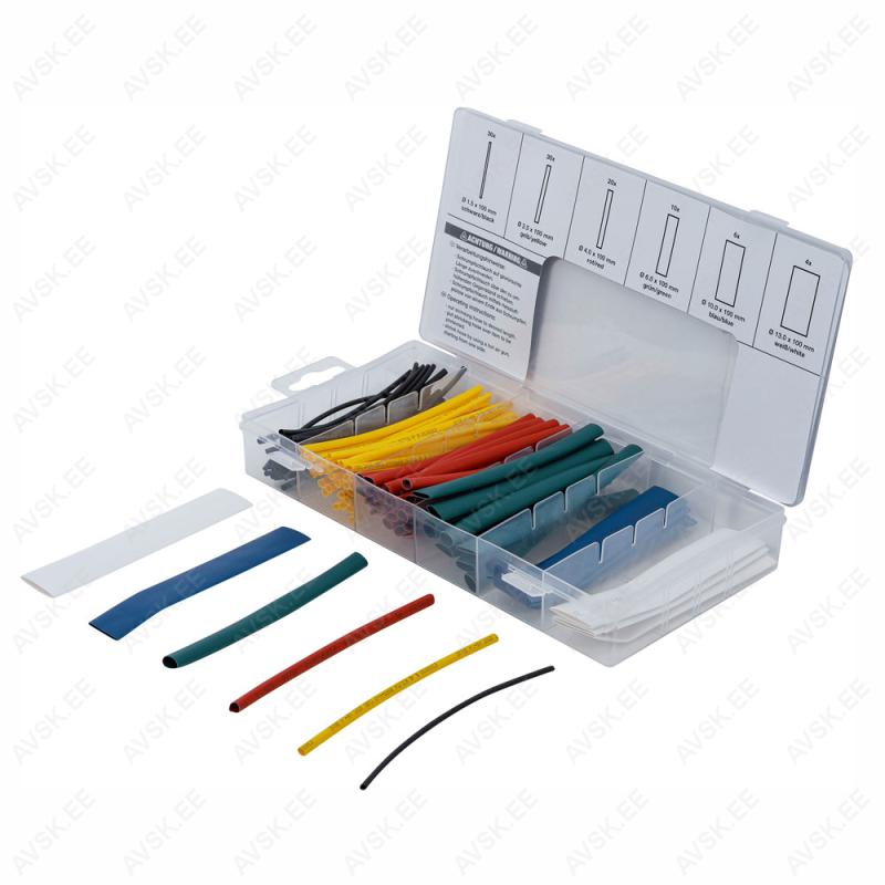 Kaitseb kaableid niiskuse ja korrosiooni eest plastikust hoiukarbis Komplektis: 30 kuumkahanevat kaabliühendustØ 1,5 mm, pikkus: 100 mm.30 kuumkahanevat kaabliühendust Ø 2,5 mm, pikkus: 100 mm20 kuumkahanevat kaabliühendust Ø 4,0 mm, pikkus: 100 mm10 kuumkahanevat kaabliühendust Ø 6,0 mm, pikkus: 100 mm6 kuumkahanevat kaabliühendust Ø 10,0 mm, pikkus: 100 mm4 kuumkahanevat kaabliühendust Ø 13,0 mm...