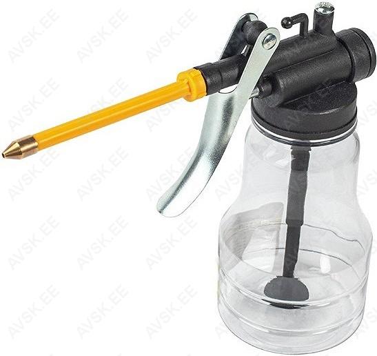 Päästikpumbaga õlikann dosaatori ja jäiga toruga. Kasutamiseks mehhanismide määrimiseks õliga. Asendamatu igas autotöökojas ja kodugaraažis.