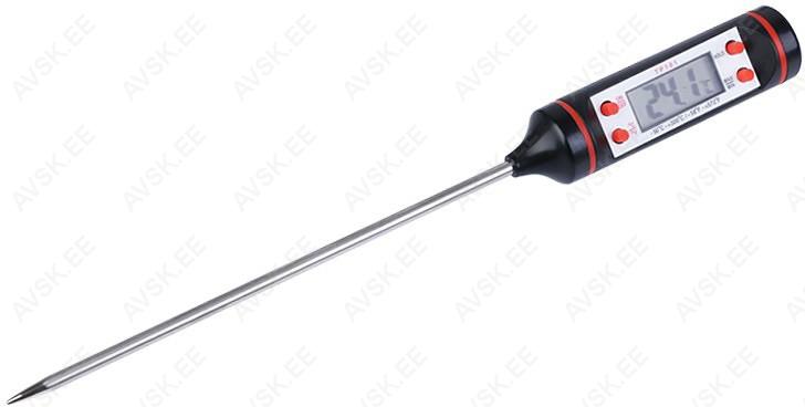 Elektrooniline pulk termomeeter vedelike ja tahkete ainete temperatuuri mõõtmiseks. Kuvab temperatuuri vahemikus -50°C kuni +300°C. Temperatuuriandur asub 145 mm pikkusesse roostevabast terasest pulgal. Temperatuurimõõtmise täpsus +/- 0.1°C. Termomeeter võimaldab kuvada temperatuuri nii Celsiuses kui ka Fahrenheitides. Toide 1xLR4 patarei.