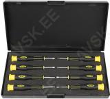 Minikruvikeerajate komplekt. pöördpeaga. Sisaldab rist- ja lapikkruvikeerajaid. Komposiit peaosaga. Fosfaaditud otsaga. Plastkarbis.
