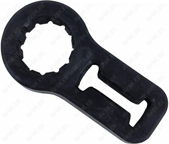 Plastist adapter. mille abil saab tõstja käepideme fikseerida. näiteks transportimisel. Miinimum käepideme läbimõõt 30-35 mm läbimõõduga torukäepidemetele. Sobib tõstjatele 53895. 53896. 53897. 53898.