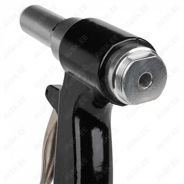 Hea jõudlusega klassikaline suruõhu needipüstol. Sobib teras ja alumiiniumist neetidele. Needisaba kogujaga. 14 mm tõmbepikkus. Neetidele läbimõõduga 2.4-3.2-4.0-4.8 mm. Max tõmbejõud 720 kg. 1/4" õhuots (kaasas). Pappkarbis.