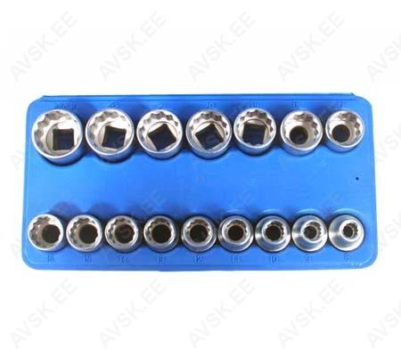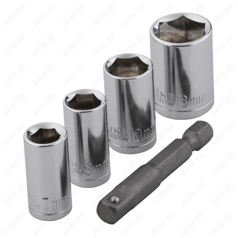 Komplekt sisaldab: HEX 4, 5, 6, 8, 10 mm Lapik 5.5, 8, 12 PH2, PH3, PH4 Torx T27, T30, T40, T45 Adapter 5/16" x 1/2" Omadused 4 padrunit (SW 7, 8, 10, 13) mitmesugusteks rakendusteksAdapter ¼" kuuskantajamiga (ISO 1173 vars – E 6.3), 50 mm, kasutamiseks akukruvikeerajate ja elektritrellidegaTehnilised andmed Padruni suurused:SW 7SW 8SW 10SW 13Varre tüüp: Kuuskantvars A/F 6,35 mm (¼")Kruvikeeraja otsa tüüp: Väline kuuskantKomplekti kuulub 4 padruniotsikut (SW 7 - 8 - 10 - 13)1 adapter, 6 mm, 1/4", pikkus = 50 mm,... Komplekt sisaldab: 3-osaline L-tüüpi kuuskantvõtmete komplekt, 1,5 - 2 - 3 mm 6,3 mm (1/4") ajam 13 padrunvõtit Super Lock: 4 - 4,5 - 5 - 5,5 - 6 - 7 - 8 - 9 - 10 - 11 - 12 - 13 - 14 mm8 padrunvõtit Super Lock, pikad: 6 - 7 - 8 - 9 - 10 - 11 - 12 - 13 mm1 knarre, peene hammastikuga, 72 hammast2 adapter pikendust, 50 ja 100 mm1 kardaan adapter1 adapter sisemine kuuskant 1/4" x sisemine nelikant 6,... padrunotsikud T15-T20-T25-T27 -T30-T40-T45 -T50-T55, PH1-2-3, PZ 1-2-3, lapikud 7/32“ kuni 5/16“, kuuskant 1/8“ kuni 3/8“ padrunid „Pro Torque“ 1/4" kuni 15/16", pikad padrunid "Pro Torque“ 5/16" kuni 3/4", küünlavõtmed 5/8" + 12 mm kardaanliigend vedruga, T-rist 250mm, pikendus 75 mm, knarre 72 hambaga, adapter