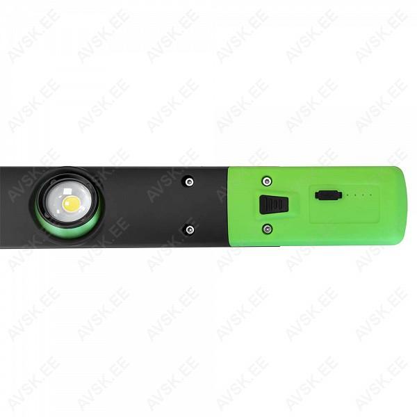 Praktiline LED-tehnoloogial valgusti sisse ehitatud akuga. 3xLED valgusti. mida on võimalik iseseisvalt tööle lülitada. 1xLED=350lm. 2xLED=700lm. 3xLED=1000lm. Olenevalt tööreziimist on valgusti põlemise aeg 1-6 h. aku laetuse indikaatortulega. Laadimine adapteri abil 230 V vooluvõrgust. Kinnitub magnetiga hoidejala abil. reguleeritav kalle.