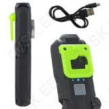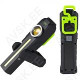 Universaalne. multifunktsionaalne LED taskulamp magnethoidikuga. Kompaktne ja praktiline. Sisaldab 3 valgusallikat. Otsvalgusti 3 W COB LED 90 lm. Küljel 5 W COB ümar töövalgusti 300 lm. Küljel 3 W COB triipvalgusti 250 lm. Lambi käepideme otsas tugev hoidemagnet. Välja keeratav tugijalg. USB pordist laetav. li-ion aku 1500 mAh. Tööaeg olenevalt kasutatavast valgustitüübist 2.5-6 h. Korpus valmistatud kummeeritud ABS plastist. Põleb ka laadimise ajal!