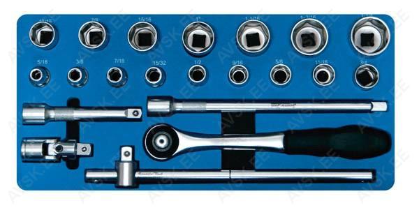 Tööriistad asuvad pehmetes "EVA"-paneelides. Paneelide pesa on teist värvi, mis aitab märgata puuduva tööriista kuju. - Pitkät 3/8" hylsyt 8, 9, 10, 11, 12, 13, 14, 15, 16, 17, 19, 21, 22, 24mm Tööriistad asuvad pehmetes "EVA"-paneelides. Paneelide pesa on teist värvi, mis aitab märgata puuduva tööriista kuju. -Pitkät 1/2" hylsyt 10, 11, 12, 13, 14, 15, 17, 18, 19, 20, 21, 22, 24, 27, 30, 32mm Tööriistad asuvad pehmetes "EVA"-paneelides. Paneelide pesa on teist värvi, mis aitab märgata puuduva tööriista kuju. 26-Osainen 1/2" konehylsysarja sisältää:- Konehylsyt 8, 9, 10, 11, 12, 13, 14, 15, 16, 17, 18, 19, 21, 22, 24mm- Pitkät konehylsyt 17, 19, 21, 22, 24mm- Pyöränmutterihylsyt 17, 19, 21mm- Konenivel- Konejatkovarsi 125mm- Konemuuntokappale 3/4" -> 1/2" Tööriistad asuvad pehmetes "EVA"-paneelides. Paneelide pesa on teist värvi, mis aitab märgata puuduva tööriista kuju. -Hylsyt 4, 4.5, 5, 5.5, 6, 7, 8, 9, 10, 11, 12, 13, 14mm-Pitkä hylsyt 4, 4.5, 5, 5.5, 6, 7, 8, 9, 10, 11, 12, 13, 14mm-72-hampainen räikkäväännin-Ruuvitaltta 1/4? neliövääntiöllä-T-liukuväännin 115mm-Yleisnivel-Jatkovarret 50, 100, 150mm-Kuusiokoloavaimet, joissa pidemmässä päässä ... Agila, Astra-G/H, Combo-C, Corsa-B/C/D, Meriva-A, Tigra-B Mootorid: X10XE, Z10XE, Z10 XEP, X12XE, Z12XE, Z12 XEP, Z14XEL, Z14XEA 46-osaline padrunvõtmete komplekt, kohvris. Komplektis sisaldub: TORX T10, T15, T20, T25, T30, T40. Kuuskant: 3/32", 1/8", 5/32", 3/16", 7/32", 1/4", 9/32", 5/16", 3/8". Kruvikeerajad 4; 5.5mm. Ristpea kruvikeerajad PZ1, PZ2, PZ3. Padrunid 5/32", 3/16", 7/32", 1/4", 9/32", 5/16", 11/32", 3/8", 7/16", 15/32", 1/2", 9/16". 72-hambaline knarre. Pikendused 50mm, 100mm, 150mm (painduv), T-rist, Adapter...