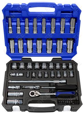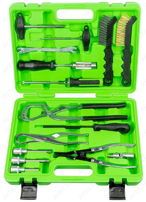 Komplektis mõõdud: 27, 29, 30, 32, 33, 34, 35, 36, 38, 41, 43, 46, 48, 50 mm Mõõdud: 66 mm / 6k, 74 & 76 mm / 15k, 76 mm / 8k, 76 mm / 12k, 76 mm / 14k, 86 mm / 16k, 86 mm / 18k, 92 mm / 10k, 93 mm / 15k, 93 mm / 45k, 96 mm / 18k, 106mm / 15k, 108 mm / 15k, 108 mm / 18k ja kolmijalka-avain 65-120mm. Adapteri 3/8" - 1/2". Mõõdud: 6, 7, 8, 9, 10, 11, 12, 13, 14, 15 16, 17, 18, 19, 20, 21, 22, 23, 24 mm Avainten räikkäpäät on varustettu innovatiivisilla tartuinkynsillä, jotka pystyvät tarrautumaan vielä jopa 85 prosenttisesti pyöristyneeseen pultinkantaan.Sisältää avainkoot 8, 9, 10, 11, 12, 13, 14, 15, 16, 17, 18, 19 mm Tööriistad asuvad pehmetes "EVA"-paneelides. Paneelide pesa on teist värvi, mis aitab märgata puuduva tööriista kuju. 15-Osainen sarja sisältää erikoislyhyet kiintolenkkiavaimet:- 8, 9, 10, 11, 12, 13, 14, 15, 16, 17, 18, 19, 20, 21, 22 mm Tööriistad asuvad pehmetes "EVA"-paneelides. Paneelide pesa on teist värvi, mis aitab märgata puuduva tööriista kuju. 21-Osainen XZN-hylsysarja sisältää:- 50 mm pitkät M5, M6, M8, M9, M10, M12- 95 mm pitkät M5, M6, M8, M9, M10, M12- 135 mm pitkät M5, M6, M8, M9, M10, M12- 195 mm pitkät M8, M10, M12 Tööriistad asuvad pehmetes "EVA"-paneelides. Paneelide pesa on teist värvi, mis aitab märgata puuduva tööriista kuju. 24-Osainen kuusiokolohylsysarja sisältää: - 50 mm pitkät 5, 6, 7, 8, 10, 12 mm- 95 mm pitkät 5, 6, 7, 8, 10, 12 mm- 135 mm pitkät 5, 6, 7, 8, 10, 12 mm- 195 mm pitkät 5, 6, 7, 8, 10, 12 mm Tööriistad asuvad pehmetes "EVA"-paneelides. Paneelide pesa on teist värvi, mis aitab märgata puuduva tööriista kuju. 24-Osainen Torx-hylsysarja 3/8" vääntiölla sisältää:- 50 mm pitkät T20, T25, T27, T30, T40, T45, T50, T55- 95 mm pitkät T20, T25, T27, T30, T40, T45, T50, T55- 135 mm pitkät T40, T45, T50, T55- 195 mm pitkät T40, T45, T50, T55 Alumiiniumkarkassil, alumiiniumkattega külgedega tööriistakast koos volditava põhjaga, lukustatav spetsifikatsioon: 1 lõikenuga 155 mm, tera 18 mm 10 varutera, 18 mm 1 universaalne mutrivõti, 200 mm 1 veepumbatangid , 250 mm 1 tangid, 175 mm 1 "telefoni" tangid, 200 mm 1 vesilood, 230 mm 1 mõõdulint, 15 mm x 3 m 1 reveresiga knarre 6.3 mm (1/4"), 72 teeth 1 pikendus, sise/välis mõõt 6....