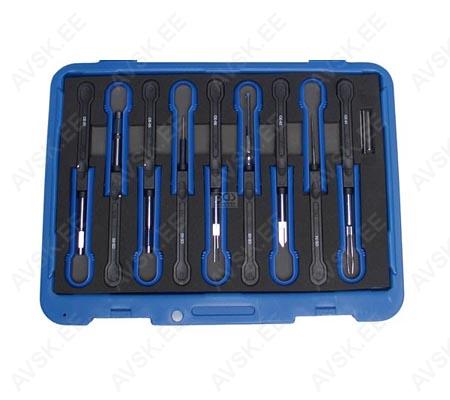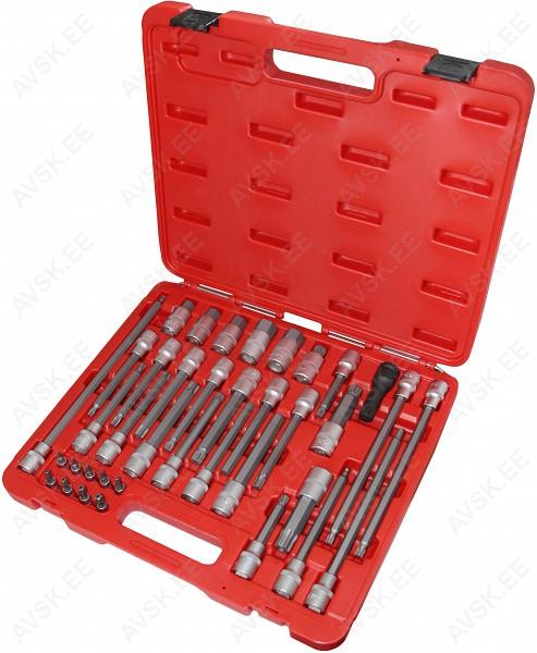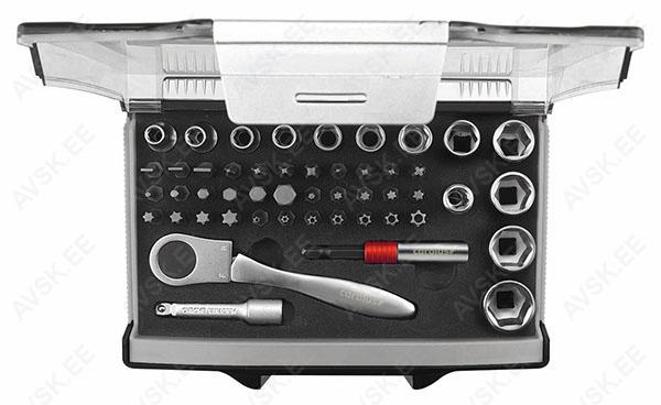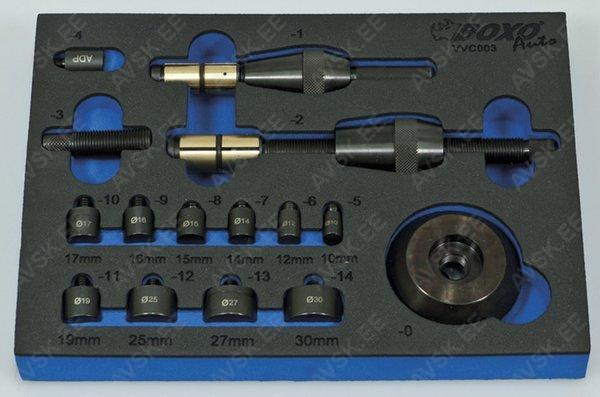 Ford B-Max, S-Max, C-Max, EcoSport, Fiesta, Focus, Grand C-Max, KA, Kuga, Mondeo, Puma, Ranger, Transit and Tourneo 12-kant, Mõõdud: 8, 9, 10, 11, 12, 13, 14, 15, 16, 17, 18, 19, 20, 21, 22, 24, 27, 30, 32, 34, 36 mm Komplekt sisaldab: - Padrunid 10, 11, 12, 13, 14, 15, 16, 17, 18, 19, 20, 21, 22, 24, 27, 30, 32 mm - Süüteküünlapadrunid 16 ja 21 mm - 72-hambaga narre - Pikendused 125 ja 250 mm- - T-saba - Liigend 1/4" tööriistakomplekt 49 osa Komplekt sisaldab: - Padrunid 4, 4.5, 5, 5.5, 6, 7, 8, 9, 10, 11, 12, 13 mm - Narre - Pikendus 100 mm - T-saba 115 mm - Üleminek 1/4" -> 1/4" otsikule - 33 otsikut VW, Opel, Ford, Mercedes-Benz, BMW jt. Ø 2,3 mm Ø 3,5 mm, Standard 1,48 mm, Micro-Timer 1, Micro-Timer 2+3, Maxi-Power-Timer, PIT POD, JPT/SPT, 3 varuhülssi, plastkarbis