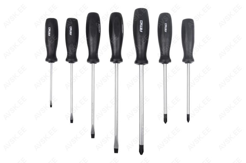 FUNKTSIOONID: kruvikeerajate komplekt kõrgeima kvaliteediga kroom-vanaadiumi terasest kruvikeerajatel on täiuslikult profileeritud libisemisvastased käepidemed kruvikeerajatel on magnetiline ots TEHNILISED PARAMEETRID: lapik kruvikeerajad: 2,0 x 50 mm, 3,0 x 50 mm, 2,5 x 50 mm, 5 x 75 mm, 6 x 38 mm, 6 x 100 mm, 8 x 150 mm ristkruvikeerajad: 5 x 75 mm, 6 x 38 mm, 6 x 100 mm, 8 x 150 mm, PH0 x ... 24 - osaline Valmistatud kvaliteetsetest materjalidest Profileeritud, mugav käepide Tugev kinnitusega ümbris Käepideme pikkus: 8,9 cm Phillipsi kruvikeerajad: 1,0 1,2 1,5 2,0 2,5 3,0 Lameda kruvikeerajad: 1,0 1,5 2,0 2,6 3,0 Torx kruvikeerajad: T2 T3 T4 T5 T6 T8 T10 Viie tärni kruvikeerajad: 0,8 1,2 Y-kujuline kruvikeeraja: 0,6 2,0 Kolmnurkne kruvikeeraja: 2.3 Punktkruvikeeraja