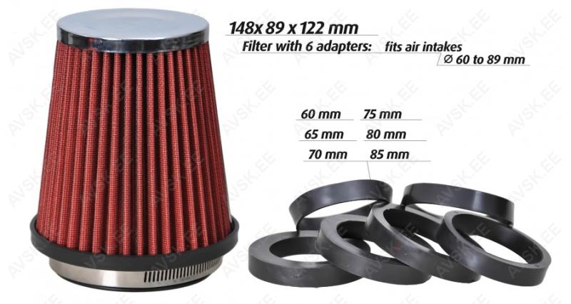 Performance air filter5102050100250500—VaikimisiOdavamad enneKallimad enneKoodi järgi A ... ZKoodi järgi Z ... ANime järgi A ... ZNime järgi Z ... AKategoorias tooteid 18Koonusfilter AF_Black AmioAV0022743718,45 €- +Lisa korviПодробнееDiameeter (sisemine) : 76 - 70 - 65 - 60 - 55 mm Filtri mõõdud: Kõrgus - 160 mm Laius - 155 mm Ülemine laius - 118 mmKOONUSFILTER MUST 155X130X120MM + ADAPTERID 60/63/70MM CARMOTIONAV0023681925,34 €- +Lisa korviПодробнееKooniline õhufilter on valmistatud puuvillast ja on kaetud roostevabast terasest võrguga. Pika kasutusea tagab puhastamise ja hoolduse võimalus. Tänu lisaadapteritele saab filtrit kohandada enamiku autodega. Komplektis kooniline filter ja 3 adapterit: 60. 63. 70 mm ning klamber. Filter tuleb paigaldada kohta. mis võimaldab sisse võtta soojendamata õhku.UNIVERSAALNE KÜLMA ÕHU SISSELASKESÜSTEEM 3"/76MM CARMOTIONAV0025327292,01 €- +Lisa korviПодробнееUniversaalne külma õhu sisselaskesüsteem sobib enamikele sõidukitele. Kvaliteetne alumiiniumtorustik. reguleeritavad klambrid jt vajalikud tarvikud tervikliku külma õhu sisselaske jaoks.Koonusfilter universaalneAV0003852027,75 €- +Lisa korviПодробнееKõrgus 162mm Koonused 86/122mm Adapterid 60-90mmKoonusfilter universaalneAV0003852119,38 €- +Lisa korviПодробнееMõõdud 105x75x87mm Õhuvõtuava läbimõõt 50mmSPORT ÕHUFILTER, 12MM, 40X60MMAV000190867,94 €- +Lisa korviПодробнее Kõrgus 40mm - alus Ø mm 50 - kinnitus Ø 12 mmSPORT ÕHUFILTER, 12MM, 40X50MMAV000190877,81 €- +Lisa korviПодробнее Kõrgus 40mm - alus Ø mm 60 - kinnitus Ø 12 mmSPORT ÕHUFILTER, KOONUS, 150X122MMAV0001908824,80 €- +Lisa korviПодробнееKõrgus 150 mm - alus Ø 122 mm - kinnitus Ø 60-90 mm, sisaldab universaalset kinnituskomplektiSPORT ÕHUFILTER, KOONUS, 150X123MMAV0001908925,92 €- +Lisa korviПодробнееKõrgus 150 mm - alus Ø 123 mm - kinnitus Ø 60-90 mm, sisaldab universaalset kinnituskomplektiSPORT ÕHUFILTER, KOONUS, 135X160MM, MUSTAV0001909032,43 €- +Lisa korviПодробнееKõrgus 135 mm - alus Ø 160 mm - kinnitus Ø 60-114 mm, sisaldab universaalset kinnituskomplektiSPORT ÕHUFILTER, KOONUS, 135X160MM, KROOMAV0001909132,43 €- +Lisa korviПодробнееKõrgus 135 mm - alus Ø 160 mm - kinnitus Ø 60-114 mm, sisaldab universaalset kinnituskomplektiSPORT ÕHUFILTER, KOONUS, 152X155MMAV0001909229,64 €- +Lisa korviПодробнееKõrgus 152 mm - alus Ø 155 mm - kinnitus Ø 60-90 mm, sisaldab universaalset kinnituskomplektiSPORT ÕHUFILTER, KÄSN, 100X145MM, PUNANEAV0001909328,15 €- +Lisa korviПодробнееKõrgus 100 mm - alus Ø 145 mm - kinnitus Ø 60-90 mm, sisaldab universaalset kinnituskomplektiSPORT ÕHUFILTER, HIGH POWER, KOONUSAV0001909450,10 €- +Lisa korviПодробнееSobitub otse õhuvõtuvooliku külge. Kerge paigaldada. Annab autole parema sooritusvõime tänu otsesele, ilma takitusteta õhuvoolule. Kõrgus 230mm, alus Ø 150 mm- kinnitus Ø 60/80 mm. Ilma kraeta sobib ainult Ø 70-80 mmSPORT ÕHUFILTRI ADAPTER (BOSCH), ALUMIINIUMISTAV0001909611,89 €- +Lisa korviПодробнееVõimaldab paigaldada ümmargusi õhufiltreid autodele, millel on ruudukujuline õhuvõtt (Bosch tüüpi)SPORT ÕHUFILTERAV0001909815,13 €- +Lisa korviПодробнееSobib Ø 60 mm õhuvõtule Kõrgus 63 mm - alus Ø 70x100 mm - kinnitus Ø 60 mmSPORT ÕHUFILTERAV0001909919,59 €- +Lisa korviПодробнееSobib Ø 50 mm õhuvõtule Kõrgus 105 mm - alus Ø 87 mm - kinnitus Ø 51 mmSPORT ÕHUFILTERAV0001910136,58 €- +Lisa korviПодробнееSobib Ø 76,89 ja 101 mm õhuvõtule Kõrgus 143 mm - alus Ø 155 mm - kinnitus Ø 103 mm5102050100250500—VaikimisiOdavamad enneKallimad enneKoodi järgi A ... ZKoodi järgi Z ... ANime järgi A ... ZNime järgi Z ... A