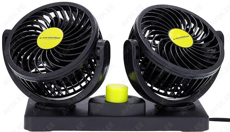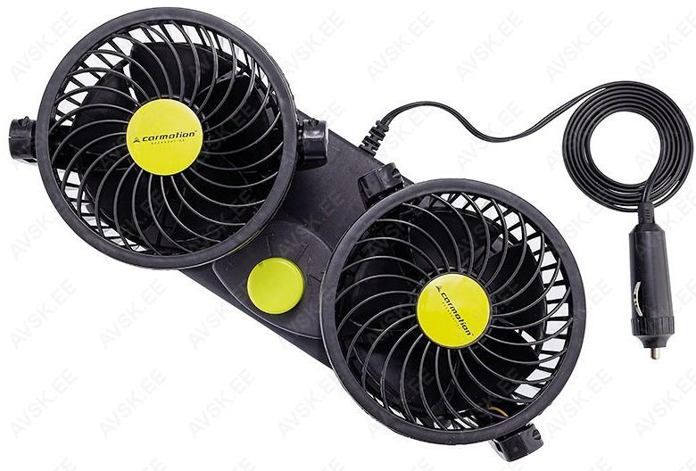 Ventilaator aitab jahutada ülekuumenenud õhku igas sõidukis. Kahe peaga ventilaator. mille kaldenurka saab sõltumatult reguleerida horisontaalselt (kuni 180°) ja vertikaalselt (kuni 360°). Ventilaatoril on lüliti töökiiruse muutmiseks – kõrge või madal. Paigaldamine: kinnitada kahepoolse kleeplindiga (2 tk komplektis). Valige sobiv koht. kus ventilaator saab vabalt pöörelda. NB! Seade ei tohi takistada juhi vaatevälja.