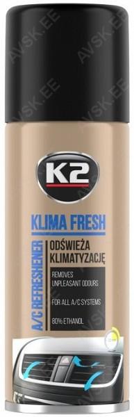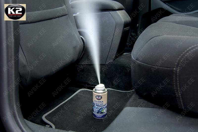 Kliimasüsteemi puhastaja K2 KLIMA FRESH on äärmiselt tõhus ja lihtsalt kasutatav kliimavärskendaja. See eemaldab mustusest ja niiskusest põhjustatud ebameeldivad lõhnad ventilatsioonisüsteemist. Kogu protsess ei kesta kauem kui 10 minutit. Sobib igat tüüpi kliimaseadmetele. Pärast kasutamist jätab värske lõhna.