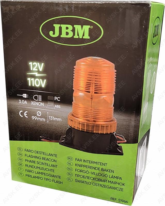 Strobo elemendiga vilkur. Kruvide/poltidega fikseeritav. 12-110 V elektrisüsteemidele. Kõrgus 131 mm. läbimõõt 61 mm (kinnitusalus 99 mm). CE markeeritud.
