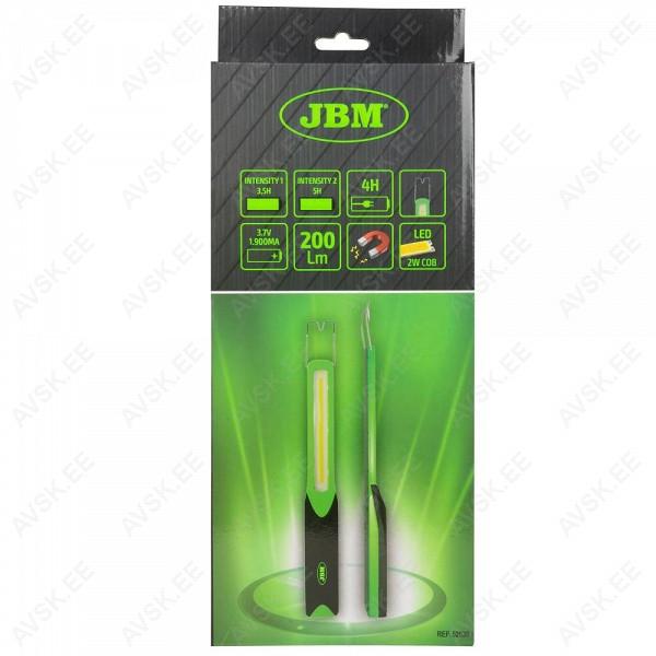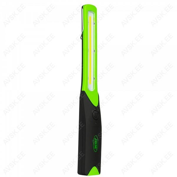 Kompaktne ja praktiline töölamp riba-LED (COB) valguselemendiga. Hoidemagnetiga (4 tk). riputusaasaga. Valgustugevus max 200 lm. Kaks valgustusreziimi 50% ja 100%. Laetav (230 V laadija kaasas). Tänu Li-ion akule põlemise aeg 3.5-5 h. Pappkarbis. Soovi korral saab juurde osta autolaadija koodiga 11989.