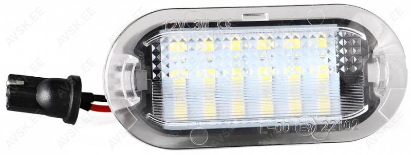 12 V LED salongitulede komplekt. Tules on kasutatud OSRAM Opto Semiconductors LED elemente. LEDi tüüp 18xSMD. Värvus 5000 K. CANBUS veateate eemaldajaga. OEM 1J0947413