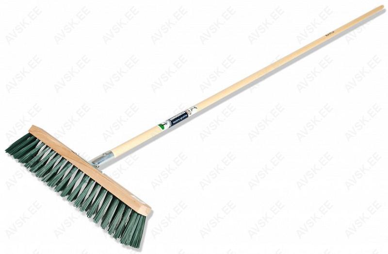 Puitpealse. plastist kinnituse ja tugevate nailon harjastega ning lakitud männipuust varrega klassikaline tänavahari. Sobib suurepäraselt garaazide. töökodade. sissesõiduteede ja siseõuede puhastamiseks. Kerge ja mugav kasutada.