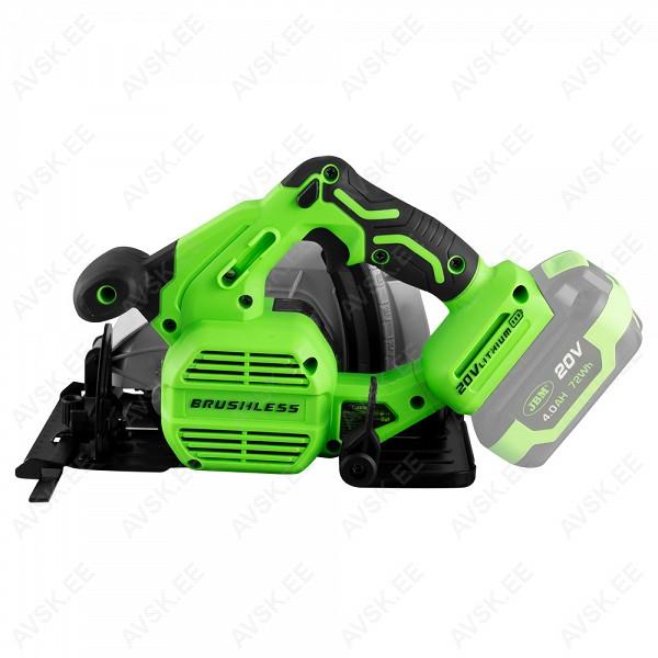Harjavaba mootoriga aku ketassaag 20 V. LED valgustiga. 165 mm läbimõõduga saeketastele. Sobib puidu ja metalli lõikamiseks. Reguleeritava tugiraamiga. Alumiinium-eriplastist korpus. Kummikattega ergonoomiline pidemeosa. Aku ja laadijata mudel. Saadaval hooldus- ja varuosad. Garantii 12 kuud.