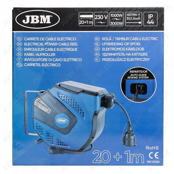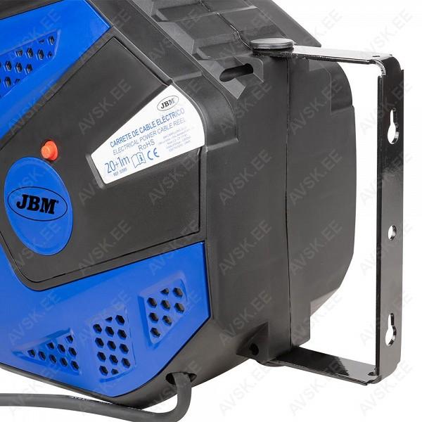 Töökoja kasutusse mõeldud plastist kassettkorpusega. eriplastist kattega kaabel 3x1.5 m² ristlõikega. Automaatselt tagasikeriv. väljatõmmates fikseeruv. Kaabli kassett on jala küljes liikuv. Kaabli pikkus 20+1 m. kaabli tüüp H07RN-F3G1.5MM2. 230 V. max 1000-3000 W. IP44. kasutatav ka õues.
