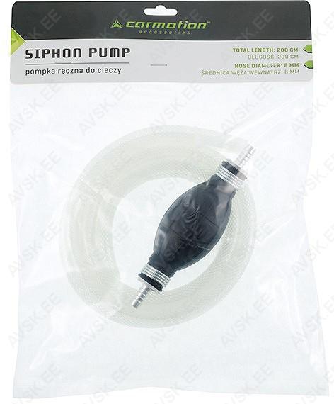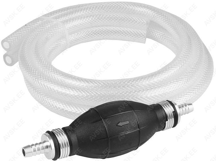 Voolikute ja tagasivooluklapiga sifoonpump. Pump on valmistatud kvaliteetsest kummist ja alumiiniumist. Reljeefsed nooled näitavad vedelike voolamise suunda. Pump sobib diisli. bensiini. alkoholi. vee. kütteõli ja muude vedelike pumpamiseks.