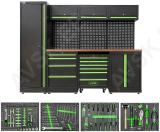 18 moodulist koosnev töölaud koos tööriistakäru (6-sahtlit. ratastega liigutatav auto juurde). lauasahtlite. riiulkapi. perfoseina ja ülakappidega. Kvaliteetne pulbervärvitud 0.8 mm paksune eriteras. Kõik sahtlid laagritega siinidel. Uksed-sahtlid lukustatavad. kapiuksed magnetsulguritega. MDF õli- ja niiskusekindel puidust lauaplaat (38 mm paksune). Reguleeritavad jalad. Kappide/moodulite asukohta on võimalik omavahel vahetada. Kogukõrgus 1947 mm. töölaua kõrgus 930 mm. perfo osa kõrgus 676 mm (laius 2040 mm). laius 2640 mm. töölaua sügavus 500 mm.
