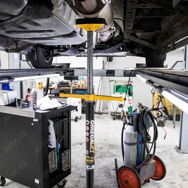 Ideaalne abirakis summuti-. käigukasti-. kardaani-. ja veermikutöödel. Laagripukil asetsev pikk trapetskeere võimaldab kiiresti ja millimeetri täpsusega tugipadja kõrgust reguleerida. Jalapedaal 1:7 ülekandega võimaldab kiirelt ja mugavalt vajalikku detaili üles-alla liigutada. jättes seejuures mõlemad käed vabaks. Kompaktne kuid tugev konstruktsioon.