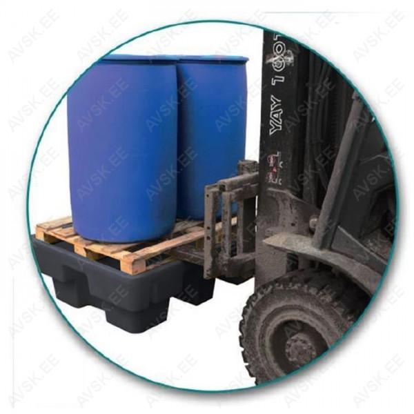 Vaadialus kahele vaadile. Sobib standardsele EUR kaubaalusele (1200x800 mm). nii puidust kui ka plastist kaubaalustele. Optimaalne madal kõrgus mugavaks vedelikutarbeks otse vaadist. Koos vaatidega kaubaalusest tõstetuna sobilik kahveltõstukiga teisaldamiseks. Tühi vaadialus tõstetav kahveltõstukiga igast neljast küljest. Vastab EU. UK ja US valgumismahu standarditele. Kaal 17 kg.