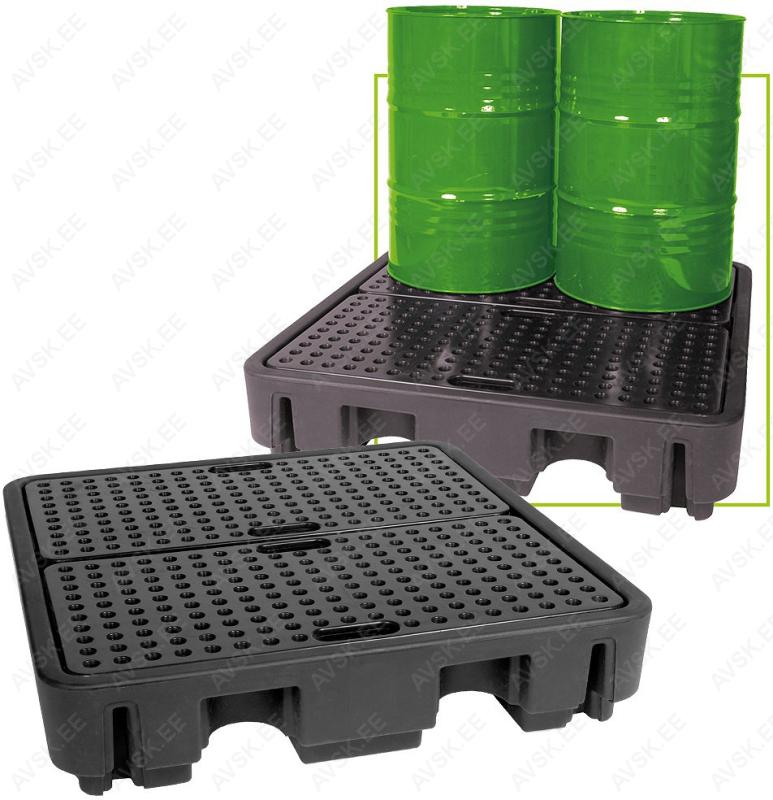 Tugev ja vastupidav vaadialus. mida nõutakse õlide ja kemikaalide säilitamisel töökojas. tööstuses. ehitusobjektidel jne. Sobib vaatidele (4 tk). saab kasutada ka 1000L IBC mahutite tarvis. Valmistatud spetsiaalsest PE-plastisegust. Eemaldatav pealisosa. Kahvelkäru või tõstukiga tõstmise valmidusega. Musta värvi. Kandejõud 1250 kg. Homologeeritud DIBT. Laius 1290 mm. pikkus 1380 mm. kõrgus 280 mm.