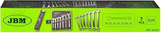 Enamlevinud suurtest mõõtudest koosnevate silmus-lehtvõtmete komplekt. Hea täiendus kui ostjal juba olemas väiksemad mõõdud (kuni 19mm). Komplektis mõõdud 20-21-22-24-27-30-32 mm. Valmistatud kroomvanaadium eriterasest. Tugevas tekstiilkotis.