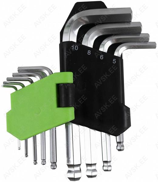 Hobikasutamiseks või väiketöökotta mõeldud L-kuuskant võtmed. Kuulotsaga. Madal versioon. Plasthoidikus.