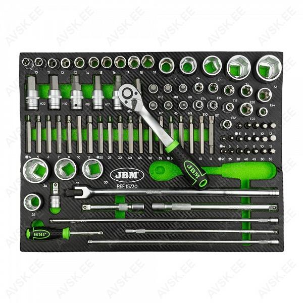 PU-paneelis tööriistade komplekt. mida võib kasutada iseseisvana või siis tööriistakärus või lauasahtlis. Keemia- ja õlikindel materjal. Paneeli mõõdud 400x533 mm.