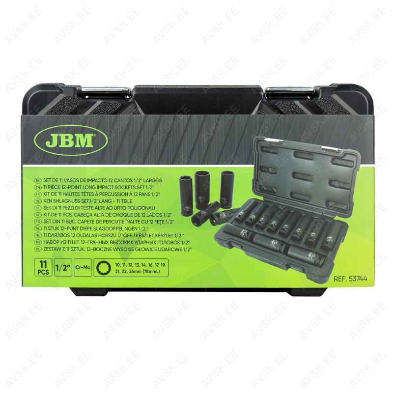 11-OS. 1/2" PIKAD LÖÖKPADRUNID (12-KANT) STARDIKOMPLEKT 10-24MM PLASTKARP JBM