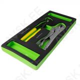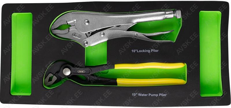 Pehmes PU-paneelis lukustustangid ja nupplukustusega kullinokad. Soovi korral saab kasutada tööriistakäru sahtlis. töölaua sahtlis. tööriistakotis või tööriistakohvris. Foam-paneeli mõõdud 175x380 mm. paksus 30 mm.