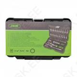 Korralik 1/4" padrunite ja padrunotsikute komplekt. Võrreldes paljude teiste tootjatega. sisaldab JBM komplekt ka padrunite keeramise T-võtit. Tirrvõti 72H on offset-komposiitkäepidemega. mis kergendab selle kasutamist. CrV eriteras. Matt pinnatöötlus. Uue põlvkonna tugevas plastkohvris.