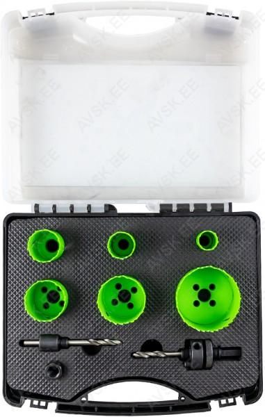 Bi-metall tehnoloogiaga valmistatud vastupidavad avasaed. Tera HSS M42 teras. 4-6 TPI. Ülejäänud osa spetsiaalsest süsinikterasest. Sobib terase ja roostevaba terase lõikamiseks. Komplektis kaasas kaks puuradapterit ja avasaed 22-29-35-44-51-68 mm. Plastkohvris.