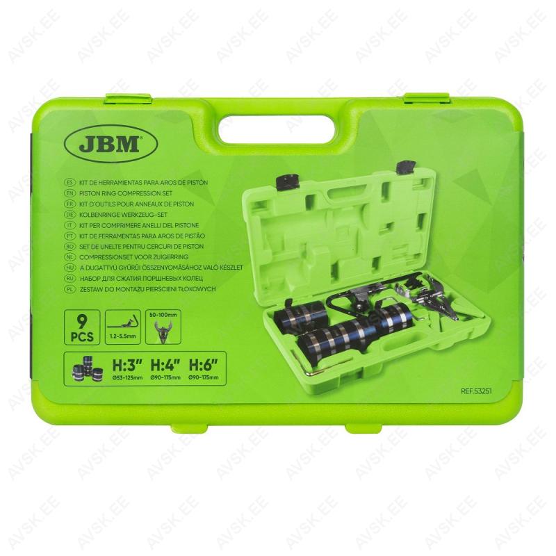 Mootori mehhaanikutele komplekteeritud kolvirõngaste paigaldamise komplekt. Paigaldusvitsade läbimõõdud 53-175 mm. lisaks rõnga kolvile paigaldamise tangid jne. Tugevas plastkohvris.