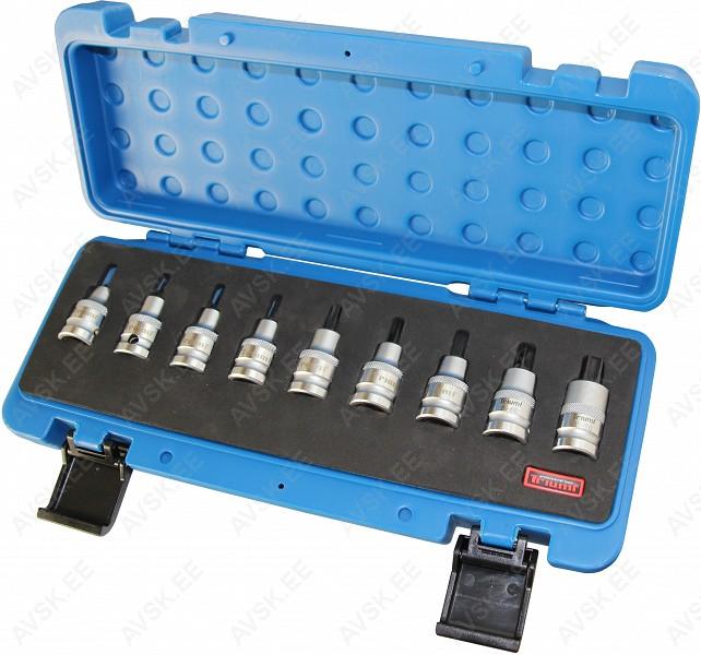 1/2" Torx padrunotsikud. S2 kroom-vanaadium terasest. Kogupikkus 55 mm. Foam hoidepaneeliga plastkohvris.