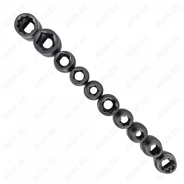 Komplekt sisaldab laialt levinud autonduse eripadruneid. Kaetud on automargid Honda. Nissan. Opel. Renault. PSA. Toyota jne. Padrunid on valmistatud löögikindlast CrMo eriterasest. Metallsiinil. Fosfaaditud pinnatöötlus. Riputuspakendis.
