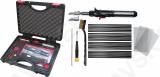 Põletigaasilt töötav plastikeevituse seade. Reguleeritav kuumus. Komplektis kaks suurust keevitusotsikut. Piezo-süütemehhanismiga. Kaasas ka plast elektroodid ( PE. PP. PS. ABS ) ja metallist tugevdusvõrgud. Plastkohvris.