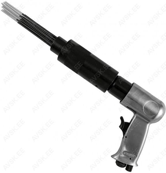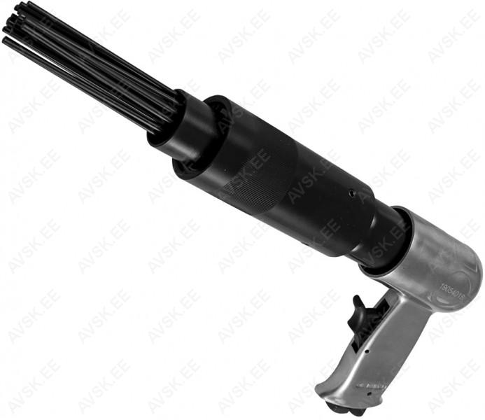 Klassikaline suruõhu-nõelpuhasti. Teras-alumiinium korpus. 4500 lööki minutis. 19 nõelaga puhastusots. Töökäik 43 mm. Keskmine õhukulu 90psi. Töörõhk max 6.3 bar. Kogupikkus 350 mm. Liides 1/4" (kaasas). Valmistatud Hiinas.