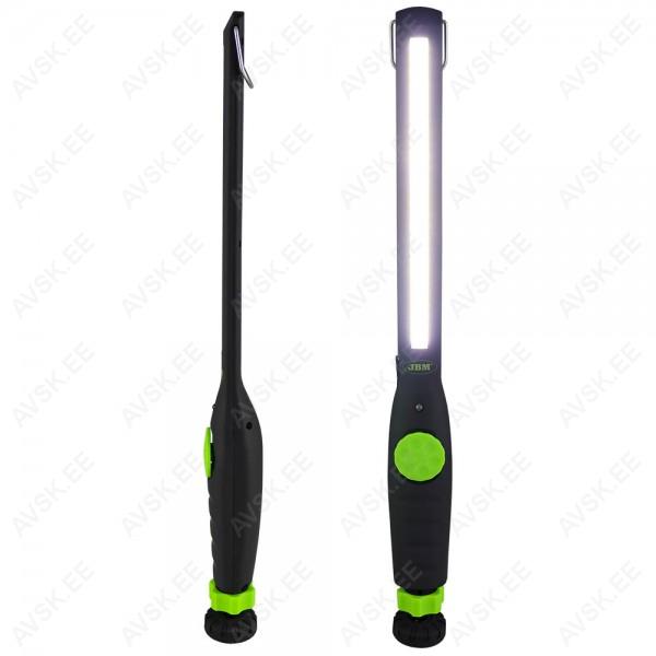 COB valgusdioodidega (nn riba-LED) töölamp/kandelamp. Valgusjõud on nupust sujuvalt reguleeritav 30-400 lm. Aku 2600 mAh. tööaeg 5-10 h. Magnetalus. riputusaas. 177 g.