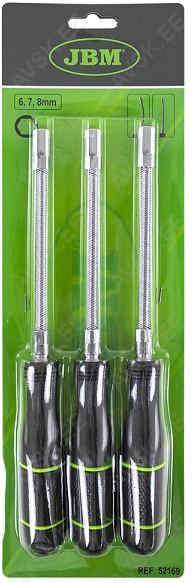 Lõdvikuklambri kruvikeerajate komplekt. mis sisaldab 3 enamlevinud mõõtu. Mõõdud 6 mm. 7 mm. 8 mm. Mugav eriplastist peaga keeramispea.