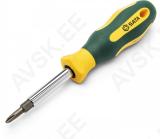 Tirrmehhanismiga 6-in-1 kruvikeeraja otsikutega. Lapik- ja ristotsikud asuvad pideme ülaosa kaane sees. Kolm funktsiooni. lahti-kinni ja fikseeritud asend.