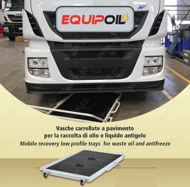 Tugeva teraskonstruktsiooni ja käepidemega ratastel vana õli anum. 70 liitrit. Eriti madal mudel. Mõõdud 1250x825 mm. kõrgus 85 mm. Varustatud kiirvahetusliitmikuga mugavaks ja kiireks tühjendamiseks.