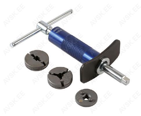 The advantage of this rewind tool is that it features a powerful internal spring. This applies firm pressure to the piston as you turn the T-handle to make sure the inner piston mechanism is wound back.